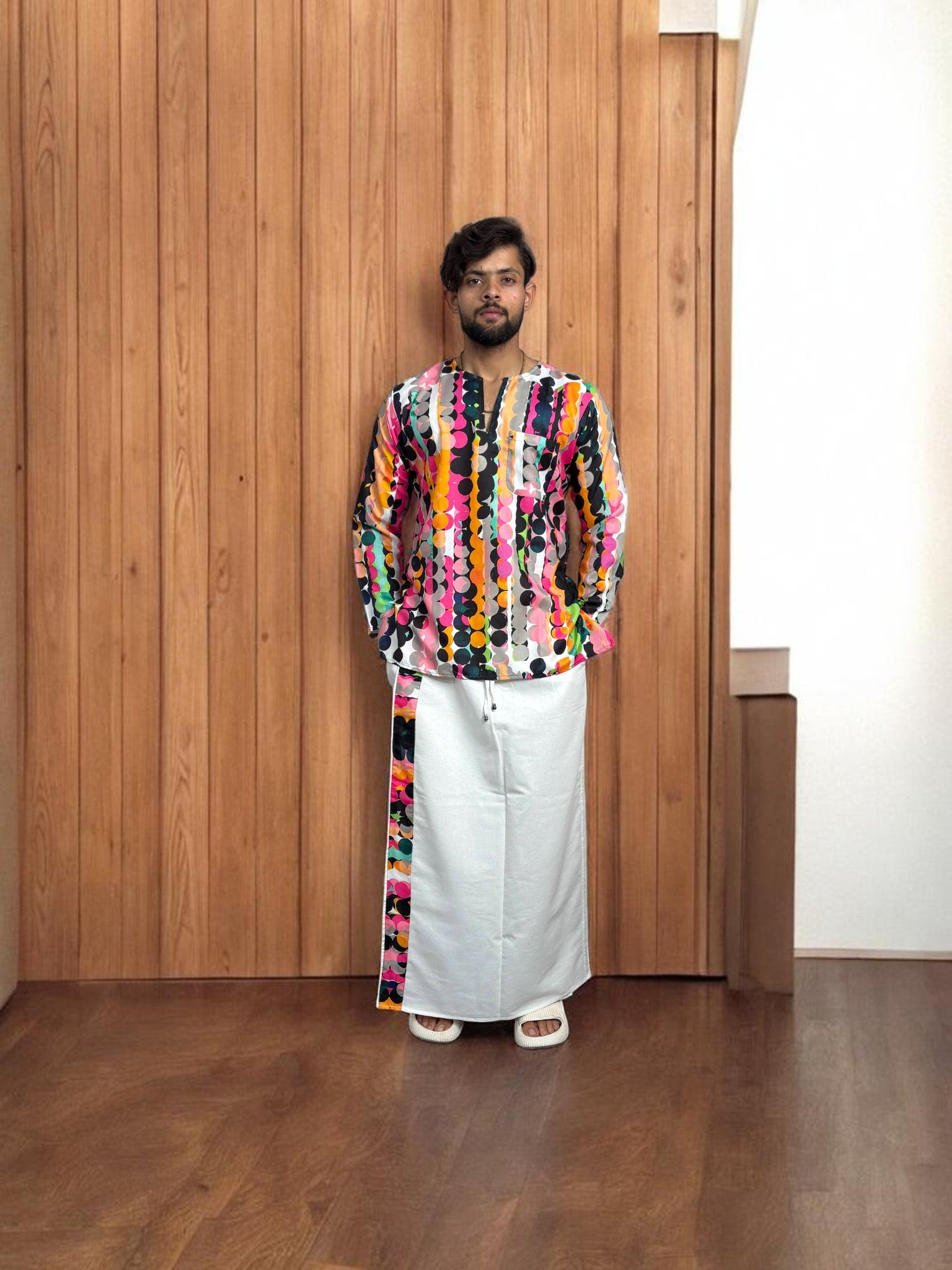 Their dhotis are extremely comfortable to wear. The quality of the fabric and the thoughtful design clearly show that a great deal of care has gone into making them. The material feels soft and breathable, making them ideal for long hours of use. They are easy to wear and drape well, without feeling restrictive. The colour combination is tasteful and well balanced, adding to the overall elegance and appeal of the product.