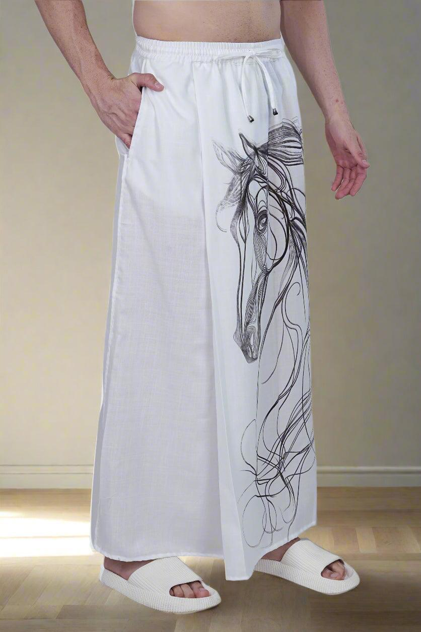 Introducing our Horse Digital Print PajamaLungi, a harmonious blend of traditional design and modern comfort, perfect for any occasion. Model is 6 feet tall, wearing Size L.