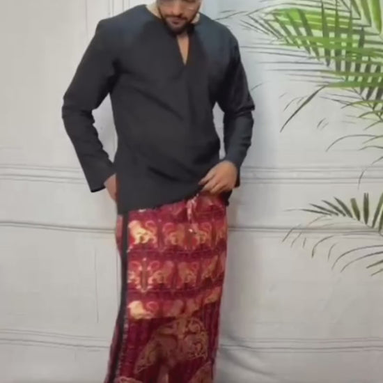 The Serene Lotus Ensemble Pajamalungi seems like a regular lungi, but that design makes the look absolutely stunning.