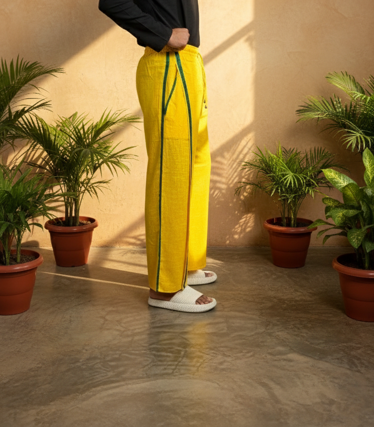 Men's Yellow With Green Stripe Pajamalungi