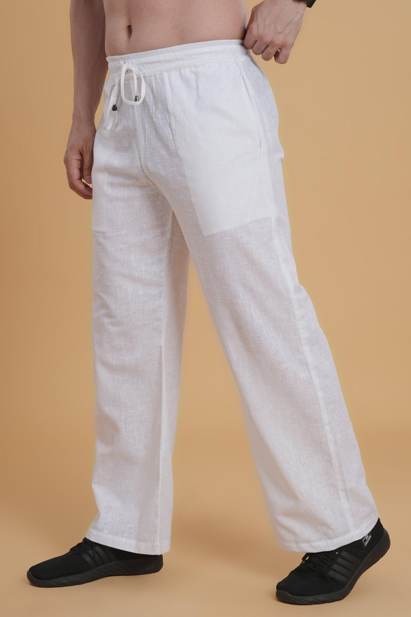 Premium White poly linen pajama crafted for ultimate comfort and style. Made with high-quality, breathable fabric, ensuring durability and softness. The relaxed fit and elastic waistband provide a cozy yet tailored look. Perfect for lounging, sleeping, or casual wear. Designed to blend elegance with practicality for all-day comfort.