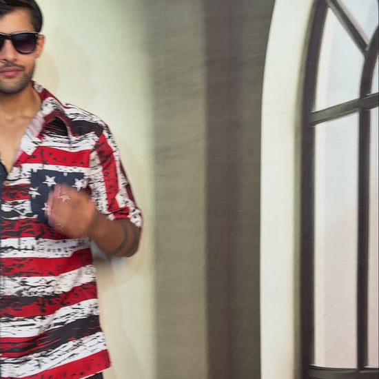 Star and Stripe Digital Print Kurta Shirt for Men's